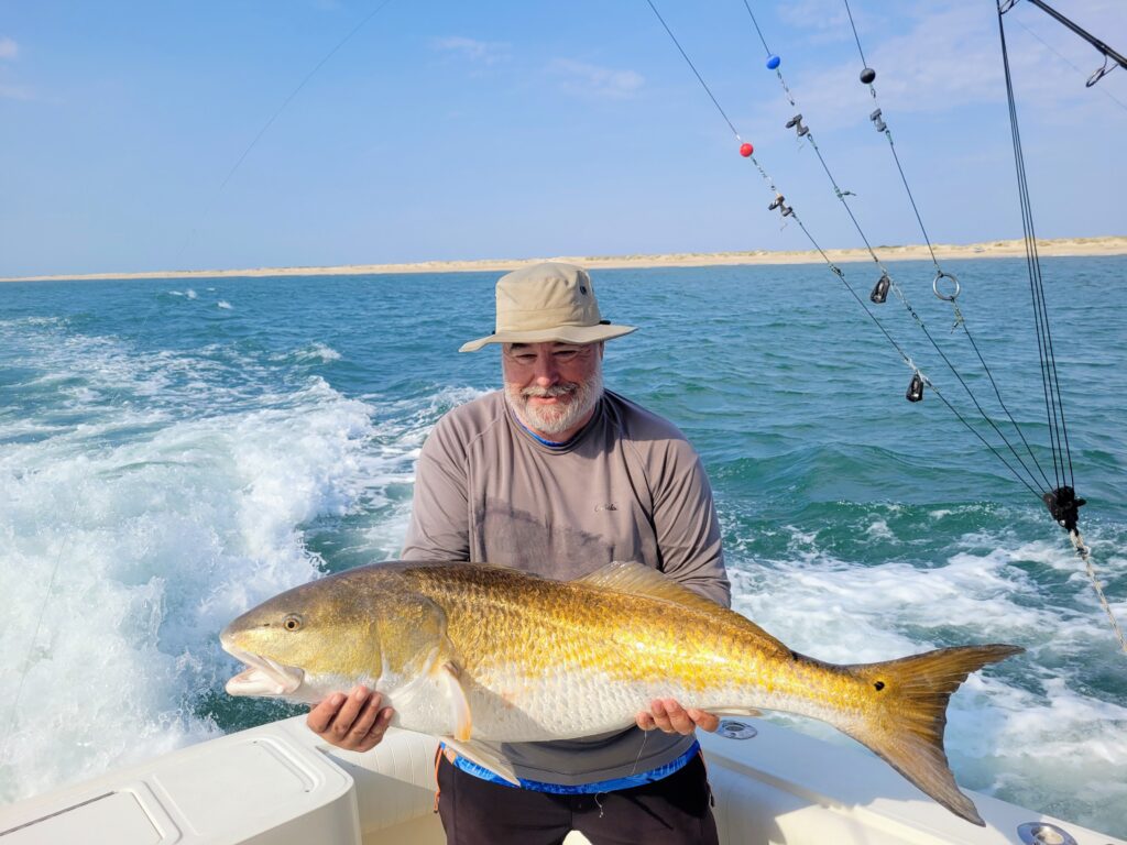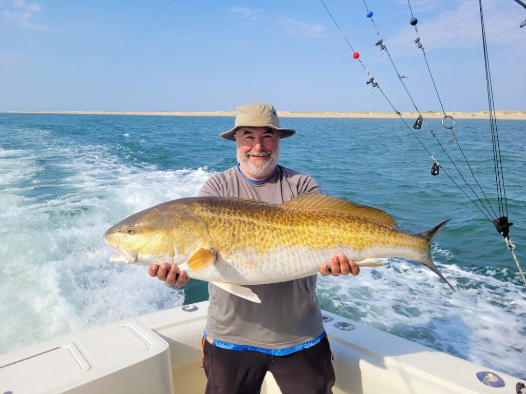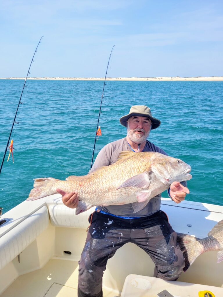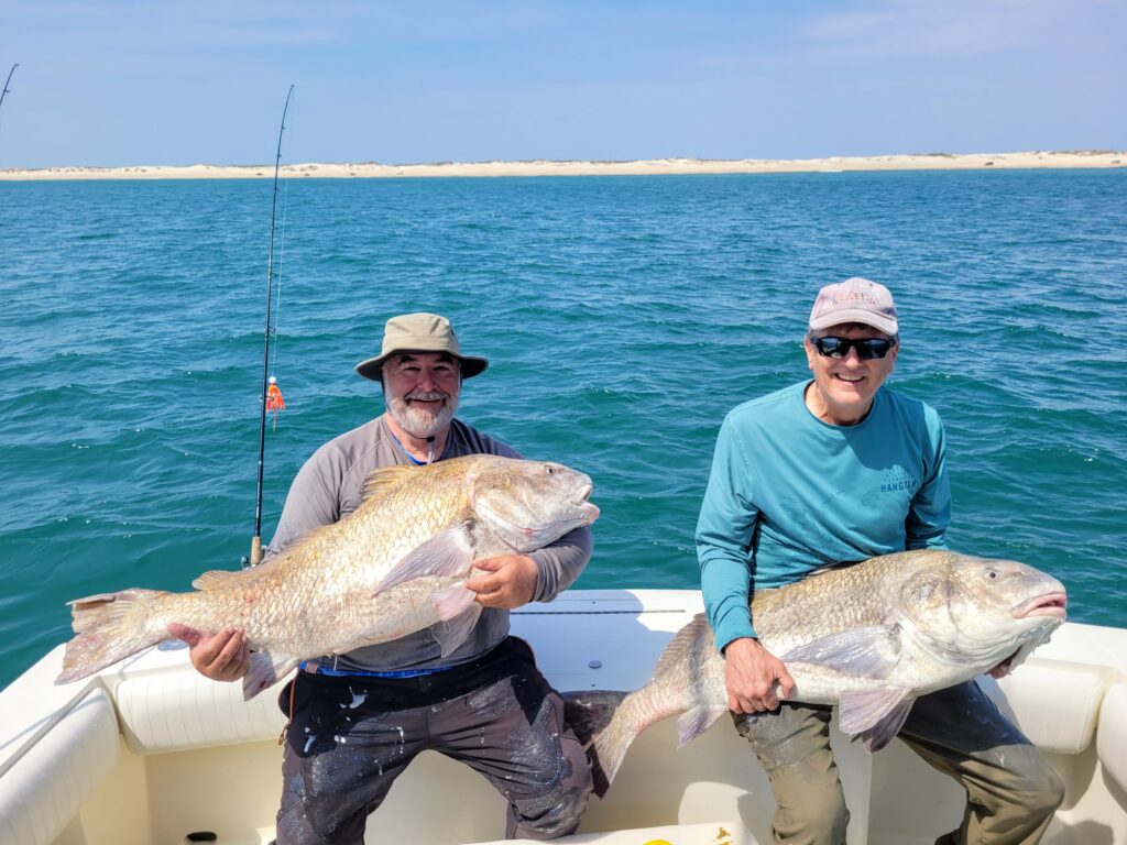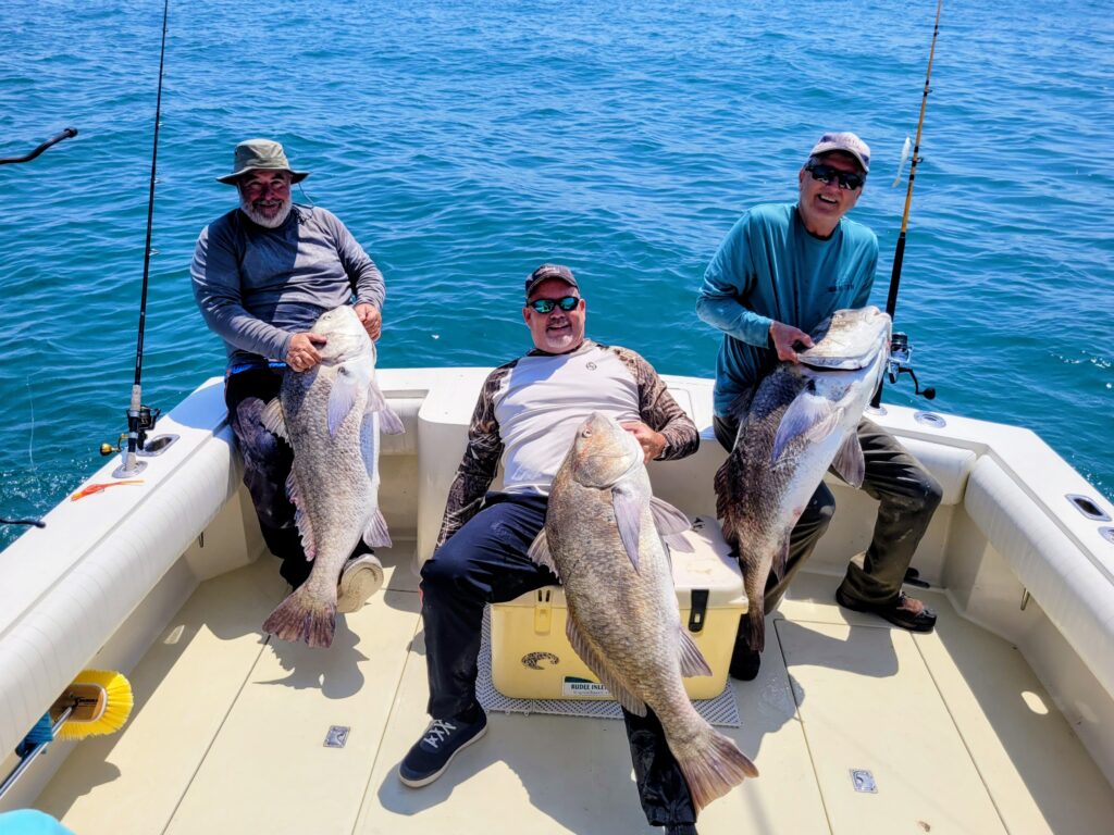 I had the pleasure of fishing on the Special Kate yesterday with Charles Southall and Hunter Southall. We turned south out of Oregon Inlet. Put a spoon out in some busting fish and caught a big false albacore. Some grouper season is opening soon and Hunter wanted bait. Bait acquired, we looked for drum and found a school of reds along with a dozen other boats. I picked a big red out of that rodeo. We left them to go off on our own and found multiple schools of big black drum. We caught all of those we wanted. Measured one at 49 inches. We left them and looked for a cobia. We found rays, turtles and more black drum but never saw a cobia.
