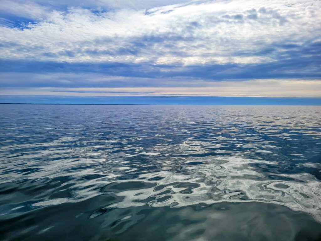 The next day, I missed the first bite on a jig. Then, I had one bite a glide bait. It was just hooked on the outside of its face. Pulled the hook on that one. Later, I had muskie come in on 3 consecutive cast of the glide bait. The first bit good, I was sure I had that one, pulled the hooks. Next bit while I had the rod buried in the water, trying to keep the bait deep for the following fish. I saw the bite, but the water resistance stopped my try at a hook set. The 3rd cast just had one follow the bait to the boat without a bite. There were a lot of those including one later by a muskie, with a mark on the side of its face where I had hooked it earlier.
